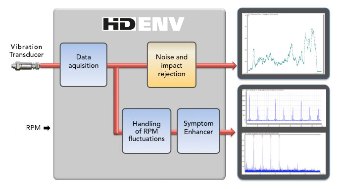 通過***清數(shù)字包絡(luò)顯示埋藏在機(jī)器噪聲中的信號(hào),從整體機(jī)械振動(dòng)信號(hào)中提取和增強(qiáng)感興趣的信號(hào),同時(shí)保留真正的******峰值。HD ENV可用于監(jiān)控非常寬的RPM范圍內(nèi)的應(yīng)用。