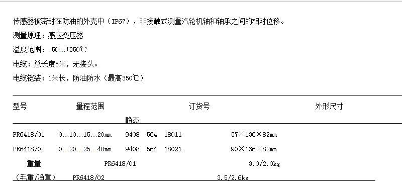 PR6418感應變壓器相對位移傳感器