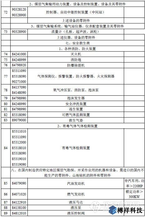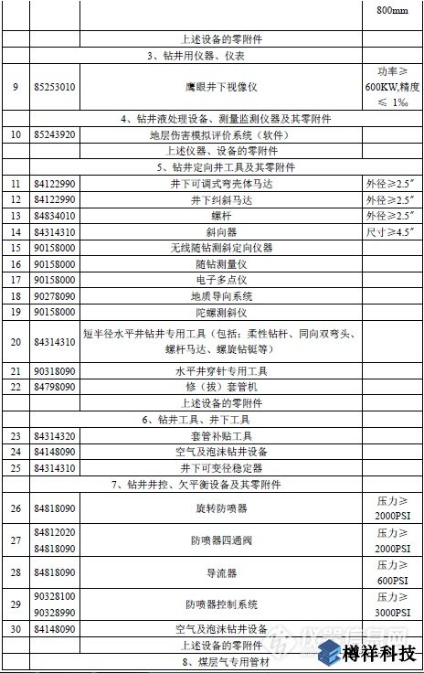 附表:勘探開發煤層氣免稅進口物資清單